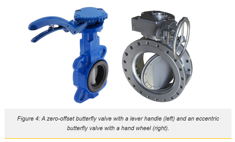 ประเภทของวาล์วปีกผีเสื้อวาล์วผีเสื้อมีดีไซน์ที่แตกต่างกัน โดยแต่ละวาล์วรองรับการใช้งานและช่วงแรงดันเฉพาะ บัตเตอร์ฟลายวาล์วสามารถแบ่งประเภทตามการออกแบบการปิดแผ่นดิสก์ การออกแบบการเชื่อมต่อ และวิธีการกระตุ้น การออกแบบการปิดแผ่นดิสก์วาล์วผีเสื้อสามารถมีศูนย์กลางหรือเยื้องศูนย์กลางขึ้นอยู่กับตำแหน่งของก้านที่สัมพันธ์กับแนวกึ่งกลางของแผ่นดิสก์และมุมพื้นผิวของบ่าวาล์ว ศูนย์กลาง การออกแบบขั้นพื้นฐานที่สุดของวาล์วผีเสื้อคือวาล์วผีเสื้อแบบศูนย์กลางหรือศูนย์กลาง ก้านจะเคลื่อนผ่านเส้นกึ่งกลางของแผ่นดิสก์ และบ่าวาล์วคือเส้นผ่านศูนย์กลางด้านในของตัววาล์ว (รูปที่ 4 ทางด้านซ้าย) การออกแบบวาล์วแบบเยื้องศูนย์นี้เรียกว่าการยึดแบบยืดหยุ่น เนื่องจากการปิดผนึกที่มีประสิทธิภาพต้องอาศัยความยืดหยุ่นของเบาะยาง เมื่อปิด แผ่นดิสก์จะสัมผัสกับเบาะนั่งเป็นครั้งแรกที่ประมาณ 85° ระหว่างการหมุน 90° วาล์วปีกผีเสื้อแบบศูนย์กลางเหมาะสำหรับช่วงแรงดันต่ำ